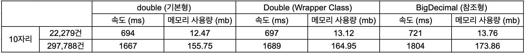 double로 저장하는 것이 성능적으로 유리하고, 사용성 측면에서도 편리하다는 결론을 도출할 수 있다.
